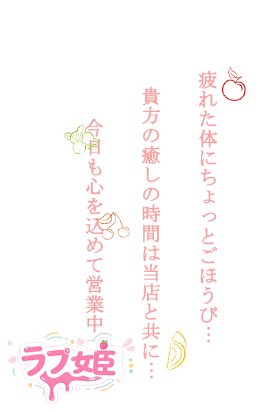 当店では、アロマオイルの効能と当店自慢のセラピストによるリンパマッサージの相乗効果による、癒しのひとときをお客様お一人お一人にお届けしております、自然で心やすらぐ優美な香りを、施術中はもちろんご帰宅お休みになってから翌日朝目覚めでまで楽しんで頂けます、どうぞゆっくりご堪能ください。